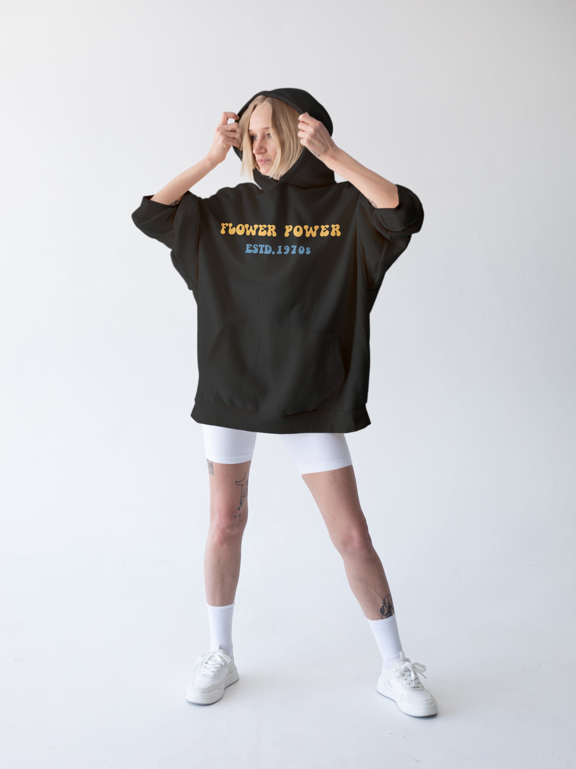 Adjustable drawstring hood & kangaroo pocket — function meets fashion